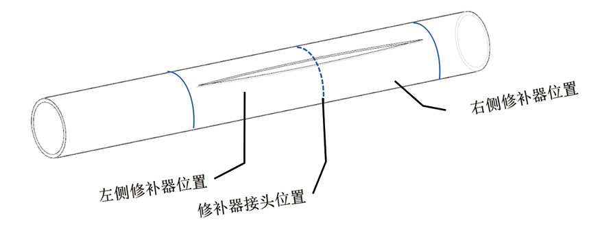 1、先測量管道創(chuàng)口長度,測算相應(yīng)修補(bǔ)器的長度和數(shù)量,大致畫出修補(bǔ)器接頭部位也就是串聯(lián)器的安裝位置。