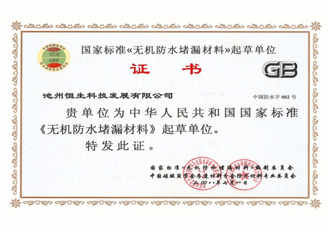 行業(yè)標(biāo)準(zhǔn)起草證書